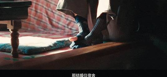 坐在老丈人的炕头上,镜头特写从他脚上的破洞袜子,缓缓移至脸上的表情。