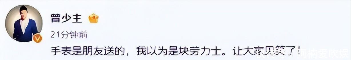 对于这次的争议,曾毅在当天下午做出回应,说“这块手表是朋友送的,我还以为是块劳力士,大家见笑了。”