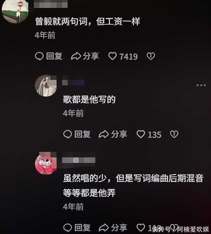曾毅因为出场的歌词不多,网友们都笑称他是“最轻松的歌手”,有人还调侃说“曾毅的工作就是‘哟哟切克闹’,就能轻轻松松赚大钱”。